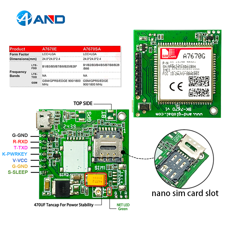 A7670G-LLSE adopts LCC+LGA form factor and is